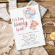 We Can Bearly Wait Boy Baby shower Invitation présente un thème d'ours adorable, illustrant une illustration peinte à la main d'un petit bébé tenant des ballons. Le texte plein de charme s'exclame : "On peut vraiment attendre !" Cette invitation est parfaite pour fêter un baby shower, ajoutant une touche de gentillesse à l'occasion spéciale.