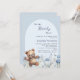 Nous pouvons attendre Bearly Baby shower invitation. Un arrière - plan bleu clair avec une arche. Décoré de fleurs sauvages couleur eau en bleu et d'un joyeux ours en peluche.