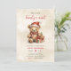 Invitation vos invités à une fête festive avec une invitation baby shower de Noël "We Can Bearly Wait". Ce charmant design présente d'adorables illustrations d'ours et des accents de vacances, créant une atmosphère chaleureuse et accueillante. La typographie ludique exprime l'excitation de l'arrivée à venir, tandis que des éléments saisonniers comme les flocons de neige ou les arbres de Noël ajoutent une touche délicieuse. Parfait pour un baby shower d'hiver, cette invitation donne le ton d'un rendez-vous cosy rempli d'amour, de rire et de joie de fêtes alors que vous vous préparez à accueillir le nouveau petit !