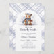 On peut attendre l'hiver Boy Bear Baby shower Invitation présente une jolie aquarelle d'un ours en peluche dans un foulard et casquette, avec un arrière - plan en vichy. Personnalisez-le avec les détails de votre événement. Une belle invitation, parfaite pour votre événement !