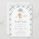 Le Baby shower We Can Bearly Wait Boy présente une jolie aquarelle d'un ours en peluche flottant et des ballons, avec un motif en vichy jaune et bleu. Personnalisez-le avec les détails de votre événement. Une belle invitation, parfaite pour votre événement !