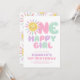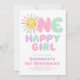 One Happy Girl! A bright and colorful sun themed girls 1st birthday invitation in pink, purple and green. Available in other colors.