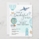 ONEderful World Hot Air Balloon Boys First Birthday Invitation comprend avion, passeport, montgolfière, bagages bleus, globe, caméra et script de calligraphie cardiaque type. Une aventure unique 1er anniversaire pour les garçons.