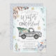 Invitation ONEderland d'hiver Camion d'hiver argenté Bonhomme de neige