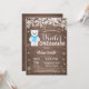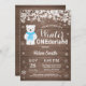 Hiver Onederland Polar Bear Boy 1er Anniversaire Invitation. Flocon de neige blanc. Invitation à la fête d'anniversaire de garçon. Anniversaire des Fêtes d'hiver. Arrière - plan en bois rustique. Country Vintage Retro Barn.