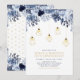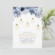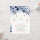 Invitez vos invités à votre jour spécial avec cette belle invitation de fête d'anniversaire de mariage. Ce design sophistiqué présente de belles fleurs de ton bleu et des lumières de corde dorées avec des luminaires géométriques. Vous pouvez personnaliser le texte et la couleur de fond. Invitation parfaite pour les célébrations du 50e anniversaire de mariage ou d'autres événements hivernaux.