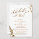 Invitation Or "Célébrez avec nous" avec motifs botaniques sur