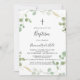 Cette invitation au baptême du feuillage d'eucalyptus confetti en or est parfaite pour un baptême de bébé rustique ou baptême. Le design comprend un feuillage vert d'eucalyptus aquarelle avec des confettis d'or.