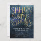 Invitation adulte élégante de fête d'anniversaire de surprise comportant l'arrière - plan d'aquarelle de bleu marine avec le texte de typographie d'or de faux qui indique "CHUT ! c'est une fête" avec les remous blancs. Customisez cette carte de modèle en ajoutant votre propre information de partie.