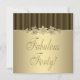 Bandes dorées noires élégantes invitation pour les 40 ans d'une femme noire pour son 40e anniversaire. Ajoutez vos informations à l'avant et à l'arrière en choisissant simplement le bouton orange "Personnalisez-le !" pour commencer à ajouter les détails de votre événement, le style de police, la taille et la couleur de la police, ainsi que le libellé. Veuillez noter que tous les modèles d'invitation que vous trouverez sur Zazzle sont des graphiques imprimés sur du papier plat sans véritables bijoux, rubans, reliefs, gaufrures ou pièces ajoutées.