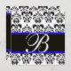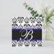 Invitation OR ET BLEU NOIR DAMAS MONOGRAMME, blanc