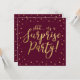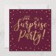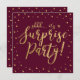 Célébrez votre journée spéciale avec cet élégant modèle d'invitation à la fête d'anniversaire surprise moderne. Ce design est composé de calligraphie et de confettis à texture or chic sur un arrière - plan rouge bordeaux. Vous pouvez customiser le texte à n'importe quel anniversaire ou événement. (21ème, 30ème, 40ème, 50ème, 60ème, 70ème, 80ème, 90ème, 100ème)