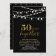 Célébrez votre jour spécial avec cette invitation de fête d'anniversaire de 50 ans élégante ! Ce design présente une typographie de script or élégante et des guirlandes lumineuses sur fond noir. Articles assortis disponibles dans ma boutique BaraBomDesign.