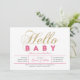 Célébrez une journée spéciale pour votre bien-aimé avec cette invitation baby shower moderne! Ce design est composé d'une typographie simple mais élégante "Hello Baby" avec une texture parties scintillant rose et or chaud.