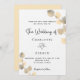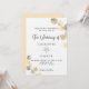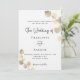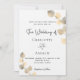 Un arrière - plan blanc décoré de sprigs d'eucalyptus dorés. Personnalisez et votre nom et les détails de la cérémonie. Lettres de couleur noire. Retour : arrière - plan d'or