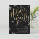 Célébrez la saison avec cette élégante invitation de fête de Noël, présente de gros faux feuille d'or calligraphie manuscrite et des flocons de neige sur riche arrière - plan noir, moderne et élégant. Grandes invitations pour la fête annuelle de vacances, la famille ou la fête de Noël d'entreprise.