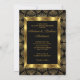 Invitation de fête d'anniversaire de mariage Art Déco diamant noir or. Élégant nœud papillon bijou & conception florale de paillettes dorées. Ils ne contiennent PAS de vrais bijoux ou nœuds !