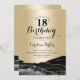 Gate noir et or 18e anniversaire invitation de fête. Design élégant et moderne avec arrière - plan de géométrie en marbre de pierre de pierre, or de parties scintillant faux et police de script de typographie. Carte invitation branchée parfaite pour une célébration anniversaire féminine élégante. Invitations Zazzle imprimées ou téléchargement instantané modèle imprimable numérique.
