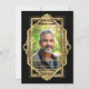 Un cadre de style art déco imitation or orné a une incrustation noire sur laquelle des modèles dorés pour votre libellé personnalisé apparaissent. Le dos a la même bordure de style Gatsby en faux or avec un modèle photo pour la photo de l'homme ou de la femme à la retraite. Ce design est adapté aux soirées à thème des années 20, aux célébrations à thème art déco ou aux événements Great Gatsby. Ils sont parfaits pour un déjeuner d'adieu d'affaires ou une fête de retraite.