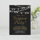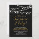 Célébrez votre jour spécial avec cette invitation de fête d'anniversaire surprise élégante ! Ce design présente une typographie de script élégante et des guirlandes lumineuses sur fond noir. Parfait pour une fête dans le jardin, une grange, ou toute autre fête surprise.