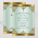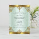 Vert Menthe Bleu, Invitation de Baptême. Cadre élégant en damas perlé & croix dorée. Personnalisez avec vos propres détails. Veuillez noter que toutes les images sont plates ! elles n'ont pas de véritables bijoux !