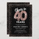 Elégante invitation de fête de quarantième anniversaire avec un arrière - plan noir élégant qui peut être changée à n'importe quelle couleur, parties scintillant brillante or rose, quarante ballons d'or rose hélium, et un texte de célébration moderne de 40e anniversaire modèle qui est facile à personnaliser.