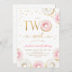 Donut blanc rose or deux douce invitation de fête de 2ème anniversaire. Design tendance et agréable avec beignets rose et blanc. Caractéristiques police de typographie et script de coeur. Vous pouvez choisir des invitations imprimées et/ou le modèle numérique de téléchargement instantané. Idéal pour une célébration féminine de style seconde anniversaire.