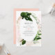 Aquarelle verdoyante tendance baptism invitation avec cadre géométrique or rose. Les flancs roses et le lavement à l'aquarelle viennent compléter le design.