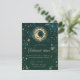 Or céleste soleil et lune, et étoiles sur fond vert. Invitation de répétition de dîner magnifique qui peut être personnalisée avec votre nom. Sélectionnez le bouton "personnaliser" pour changer le style, la couleur et la taille de la police.