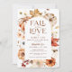 Rust Orange Chute dans Love Floral Citrouille Baby shower. Invitation à la douche nuptiale rustique et élégante avec citrouilles blancs aquarelle peints à la main, feuilles et fleurs avec rouille orange / rouge "tomber amoureux" libellé, cadre d'arche florale et modèle de fleurs automne dans le dos. Contactez-nous par conversation si vous avez besoin de personnalisation ou de correspondances.