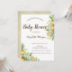 Belle invitation à la douche bébé d'éléphant avec orange, fleurs et feuilles. Ces invitations pour les douches pour bébés sont facilement customisées pour votre événement en ajoutant simplement les détails de votre événement.