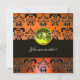 Invitation ORANGE BLACK DAMASK MONOGRAM, topaz jaune