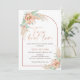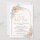 Invitation de taco 'bout love couple shower avec calligraphie moderne en or rose faux dans un style bohème avec un arrangement charmant de cactus orange fleuri, herbe de pampa et arche en or rose faux.
