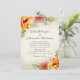 Moderne et élégant brûlé orange et corail aquarelle floral et verdure automne/automne faire-part de mariage botanique de style champêtre. Les noms de la mariée et du marié sont écrits dans une belle police manuscrite de script de calligraphie.