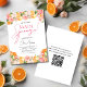 Célébrez votre future mariée avec notre Fête des mariées Orange Squeeze principale. Avec ses touches vibrantes d'orange et d'agrumes, cette invitation apporte une touche de fraîcheur et de gaieté à votre événement. Parfait pour une fête ensoleillée et amusante, il allie charme ludique et design élégant. Invités Invitations pour honorer la mariée avec un rassemblement animé plein d'amour et de zeste. Idéale pour les douches à thème agrumes, cette invitation donne le ton d'une journée lumineuse et mémorable !