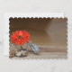 Enregistrez la carte à plat Date avec la photo sur les deux côtés. Un look mariage rustique que vous apprécierez avec la fleur orange vif dans le pot Mason en verre. Le bocal est partiellement rempli de petits rochers. La décoration en pot de verre est installée sur une table en bois rustique. Idéal pour toute saison. Personnalisez ce modèle avec vos informations.
