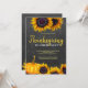 Rustique moderne jaune et orange brûlé aquarelle peint à la main tournesols et citrouille Thanksgiving Dinner Party invitation avec chic script doré lettrage sur un arrière - plan de tableau noir de charbon gris foncé. +++++ Convient pour une soirée de Thanksgiving rustique et élégante.