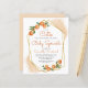 Cette invitation à saupoudrer sur le thème des agrumes présente un cadre géométrique doré orné d'oranges d'aquarelle. Le texte personnalisable est dans un script d'écriture moderne orange et noir sans serif. Personnalisez-le avec le nom de la future maman et les détails de la douche. Le dos de la carte est une couleur orange pastel qui correspond aux tons clairs de l'aquarelle à l'avant. Idéal pour un baby shower d'été !