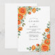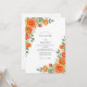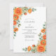 This design features a warm palette of vibrant orange ranunculus and delicate poppies intertwined with sage green eucalyptus leaves. The watercolor artwork creates a radiant and sophisticated atmosphere for a sunny seasonal event. Lush floral clusters and soft botanical foliage accent the layout to create a clean and polished aesthetic.