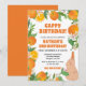Célébrez la journée spéciale de votre enfant avec notre invitation anniversaire vibrante Orange Tangerine Capybara Kids Fun Cappy ! Ce design joyeux présente une bordure ornée de grosses tangerines, ajoutant une touche de charme acidulé. Un capybara amical sur le côté ajoute une touche fantaisiste à l'invitation, ce qui la rend parfaite pour une célébration d'anniversaire amusante et ludique. Les couleurs orange vif et tangerine évoquent un sentiment de bonheur et d'excitation, créant une atmosphère festive pour la fête.