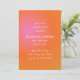 Célébrez votre grade avec des couleurs audacieuses et un style ludique! Cette invitation moderne à la remise des diplômes comporte un arrière - plan de dégradé orange-rose vibrant avec des mélanges de couleurs éclatants et une police manuscrite de script. Le mélange de typographie décontractée et moderne en fait un lieu idéal pour les ados branchés et les diplômés élégants.