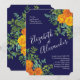Invitation Orange & Marine Blue Peony & Rose Floral Mariage