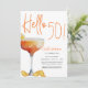 Amusant Moderne Orange Bonjour 50ème Anniversaire Invitation Faites de votre événement mémorable avec cette amusante aquarelle moderne Bonjour 50 anniversaire invitation. Les couleurs vibrantes et les coups de pinceau doux donnent une sensation fantasque et artistique à la conception, ce qui en fait un choix parfait pour une fête d'anniversaire remplie de joie et de fête.