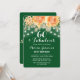 Élégante invitation à l'anniversaire fleuri avec étonnante aquarelle bouquet rose orange avec lumières à cordes sur fond vert.
