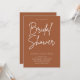 Le design simple comprend une "douche nuptiale" en écriture manuscrite décontractée, avec les détails de votre événement en dessous de la cendre douce moderne Orange Terracotta lettrage.