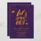 Une jolie cool moderne d'araignée d'Halloween traîner script avec l'illustration de mignonnes araignées et une police moderne, une simple invitation minimaliste violette et orange parti.