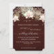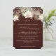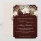Faire part de mariage rustique scintillant orchidée blanche floral burgundy bois BOHO. Un papier de bois de grange taché de rouge burgundy foncé riche, en détresse avec des lumières féeriques scintillantes crée une atmosphère magique de nuit pour votre mariage jungle bohème inspiré, tropical au bord de la mer. La peinture à l'aquarelle de l'orchidée florale et du palmier et du feuillage de philodendron à feuilles fendues a été créée par l'artiste de renommée internationale et sous licence, Audrey Jeanne Roberts. Copyright.
