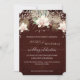 Faire part de mariage rustique scintillant orchidée blanche floral burgundy bois BOHO. Bois de grange sombre taché de rouge burgundy riche, en papier de bois de grange en détresse avec des lumières féeriques scintillantes crée une atmosphère magique de nuit pour votre mariage jungle bohème inspiré, tropical au bord de la mer. La peinture à l'aquarelle de fleurs d'orchidées et de feuilles de palmier et de philodendron à feuilles fendues a été créée par l'artiste internationalement renommée et licenciée, Audrey Jeanne Roberts. Droit d'auteur.