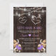 Création unique avec typographie "JE VEUX, MOI AUSSI" à l'intérieur de deux cœurs, lampions en bocaux, orchidées violettes aquarelle, herbe des pampas séchée, feuilles de palmier, lunaria, sur une vieille grange. Utilisez l'outil Personnaliser pour ajouter vos informations. Visitez, s'il vous plaît, ma Collection Florale Herbe des Pampas.