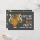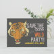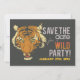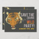 Invitation orienté de partie d'animal sauvage avec un tigre féroce sur la couverture tandis que le tigre effrayant observe regarder au lecteur sur le dos pour des filles. Grand invitation pour les parties orientées d'animal ou de forêt !